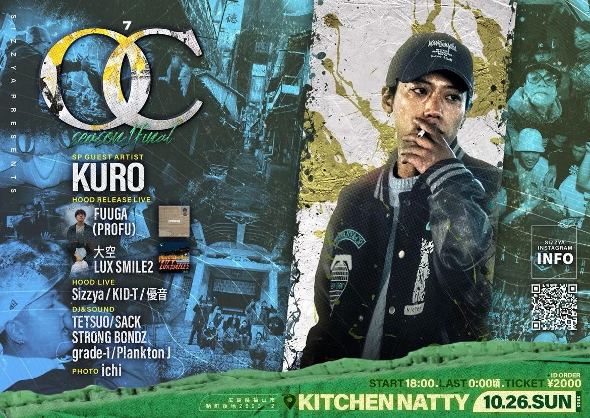 sizzya presents OC -7- 10月26日 著者 キッチンナッティ 2025 10/26 (日) 18:00〜23:00 @kitchen Natty ticket - 2.000円 + 1D SP Guest artist ・KURO OC Release Live ・大空 -Lux Smile 2 - ・Fuuga - PROFU - Hood Live ・Sizzya ・KID-T DJ&Sound ・plankton J ・Strong bondz ・TETSUO ・sack ・Grede-1 キッチンナッティ